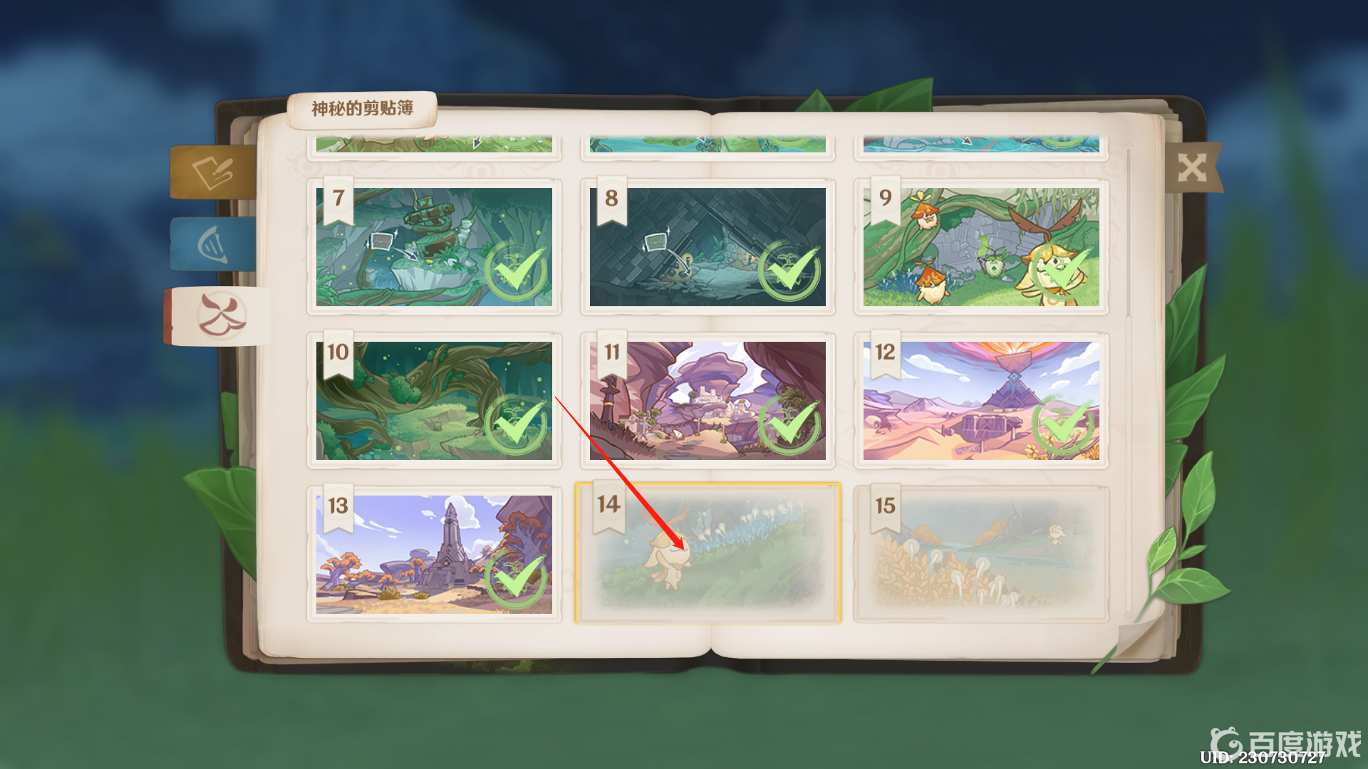 到到目前原神3.2版本,森林書神秘的剪貼簿已經更新了15張照片。但是也只有前面13張照片的地方是在現有地圖上已經出現了的。