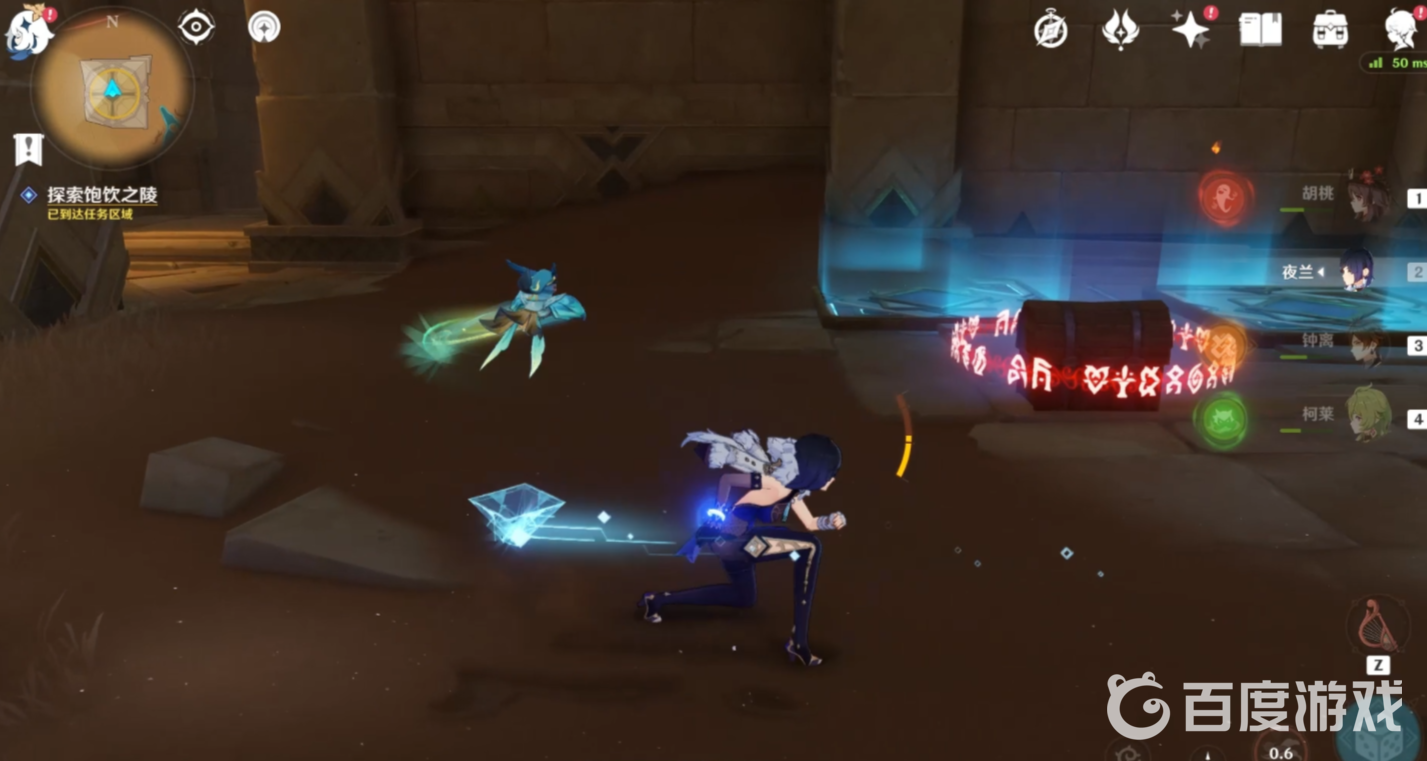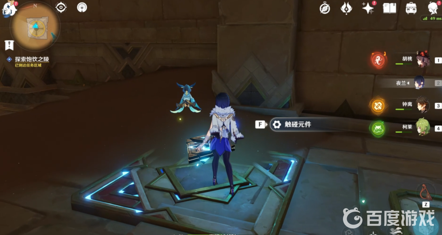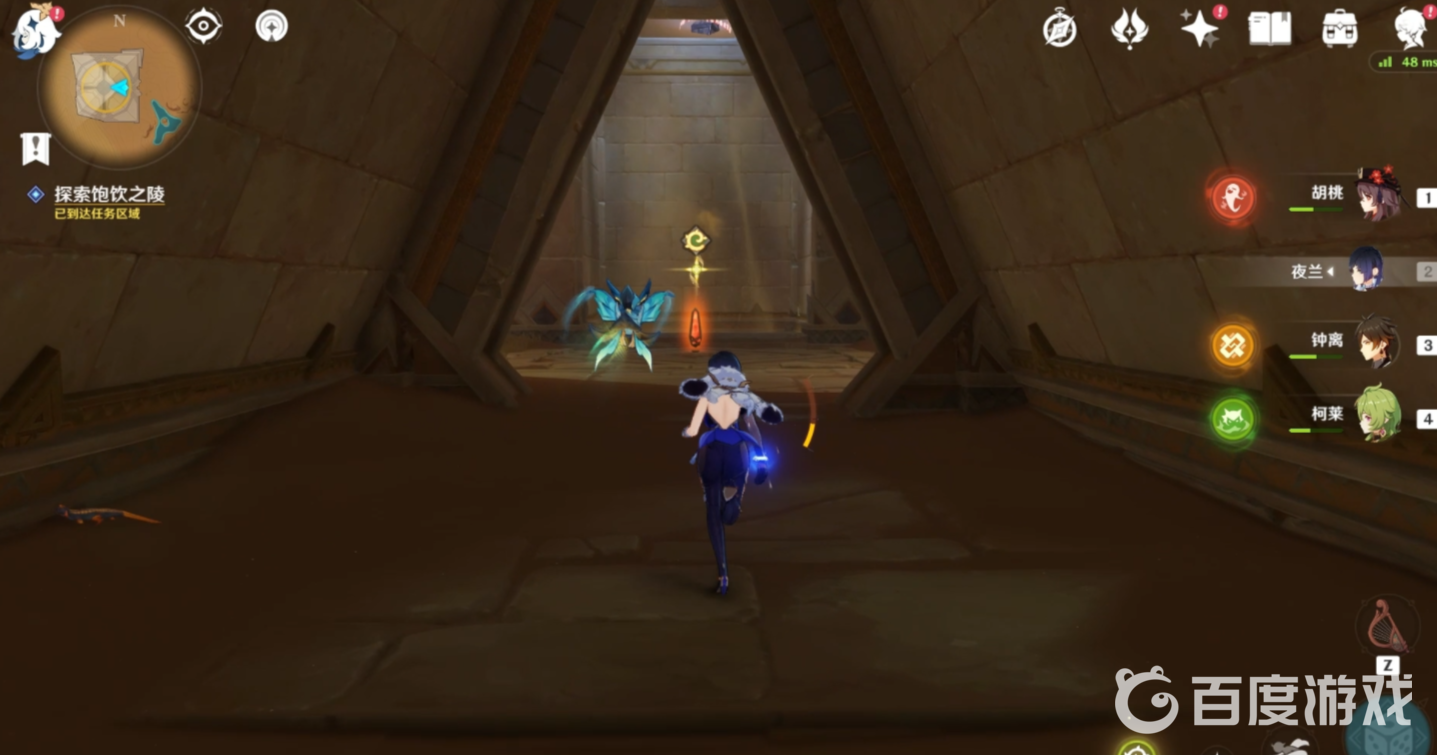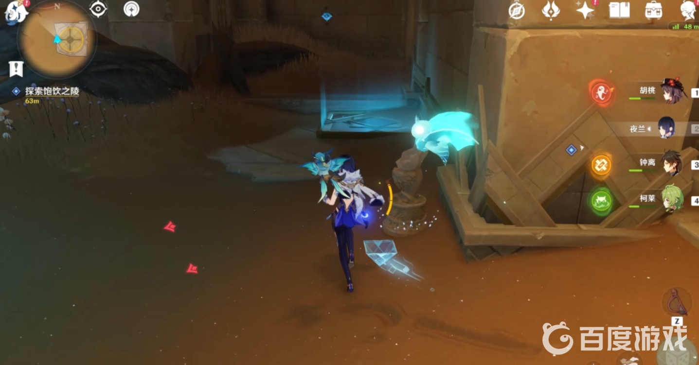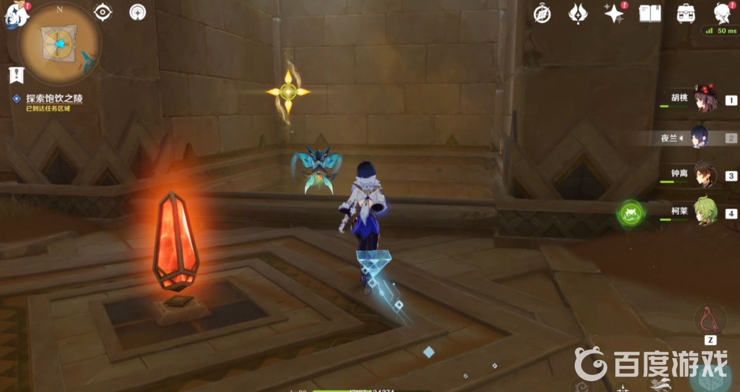 來到任務點進入飽飲之陵,先點擊門口的紅色立柱,將其轉化為藍色,然後從右邊大門進入,能看見兩個藍色方塊,旁邊就是藍色三角,使用藍色三角解鎖其中一個方塊,等候三角刷新,然後繼續激活第二個。