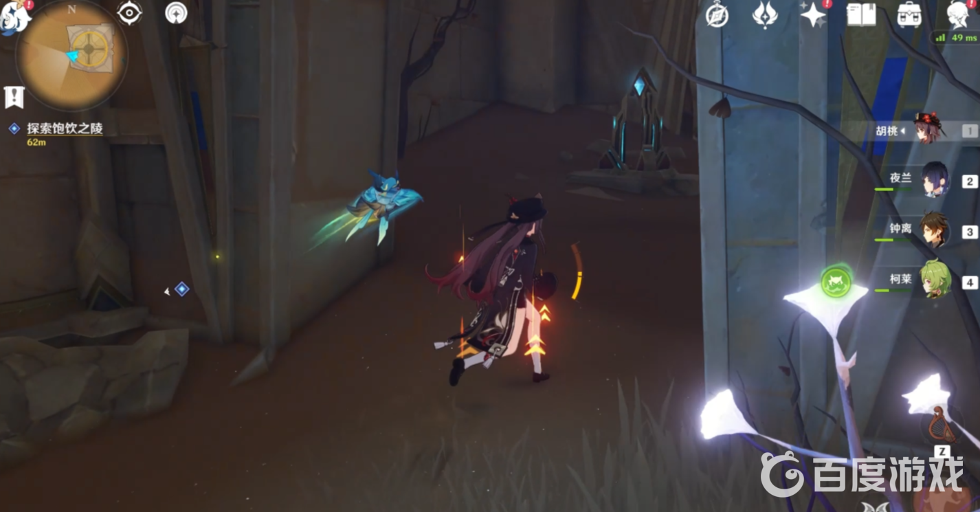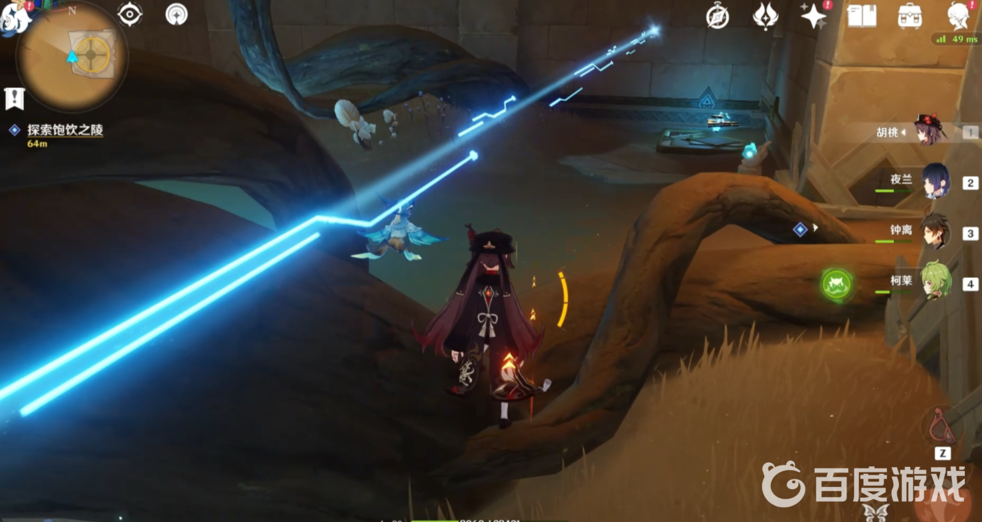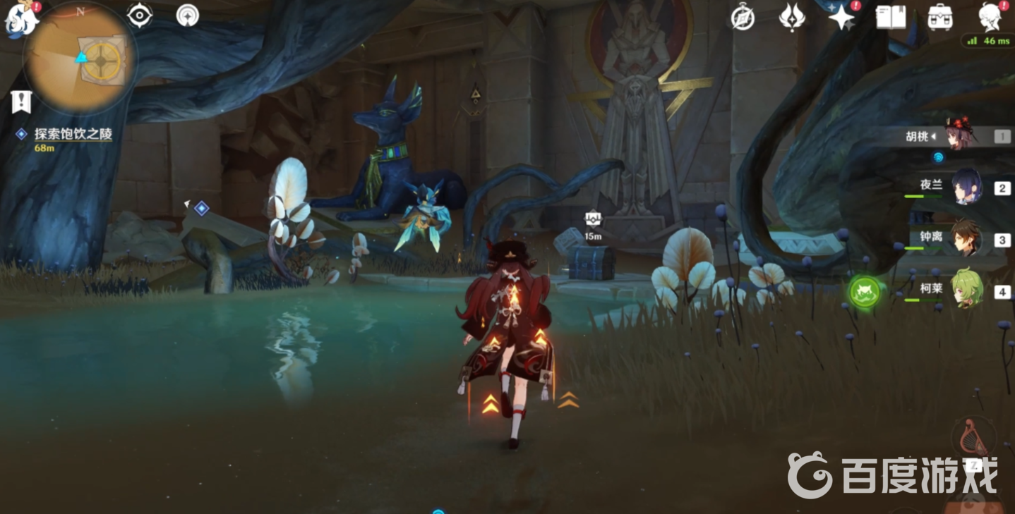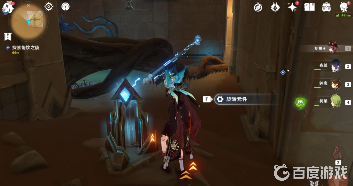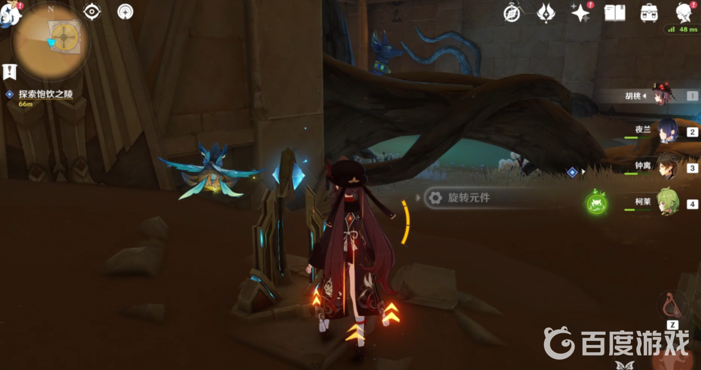 來到任務點進入飽飲之陵,先點擊門口的紅色立柱,將其轉化為藍色,然後從右邊大門進入,能看見兩個藍色方塊,旁邊就是藍色三角,使用藍色三角解鎖其中一個方塊,等候三角刷新,然後繼續激活第二個。