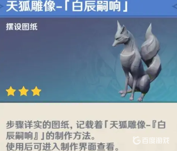 在地圖中進入下圖箭頭所在的位置逢岳之野,接著選擇奇饋的寶箱,最後打開箱子即可查看白辰嗣響擺設圖紙。步驟詳實的圖紙,記載著「天狐雕像-「白辰嗣響」」的製作方法。