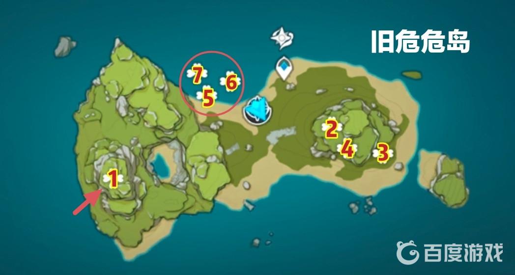 2、舊危危島有7個星光凝核(位置如下),其中5~7三個在新危危島也能獲得