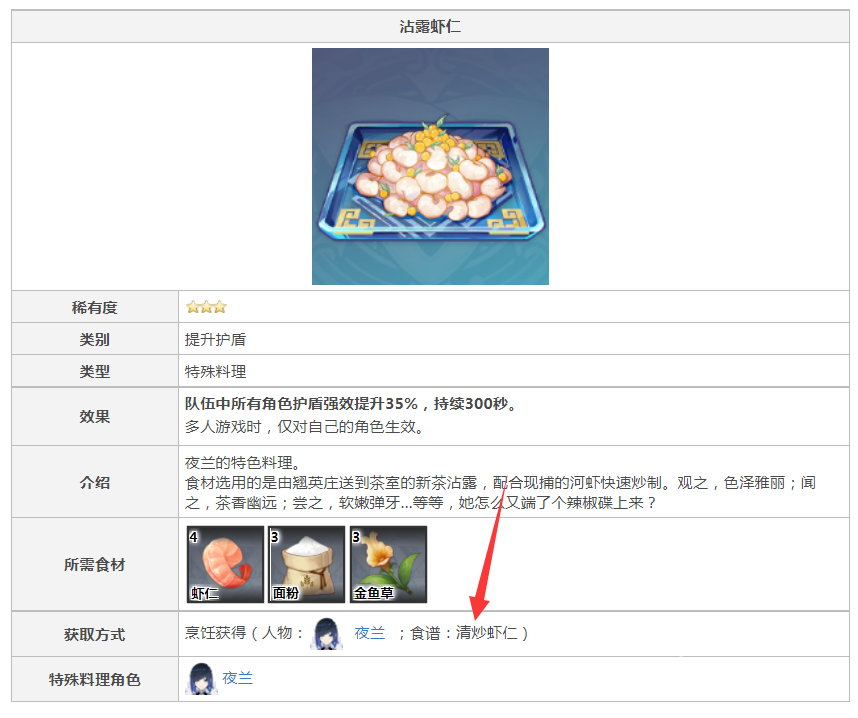 原神夜蘭特殊料理是沾露蝦仁,通過烹飪清炒蝦仁的方式獲得。在原神遊戲中,沾露蝦仁是夜蘭的特殊料理,該料理可以用於提升護盾。