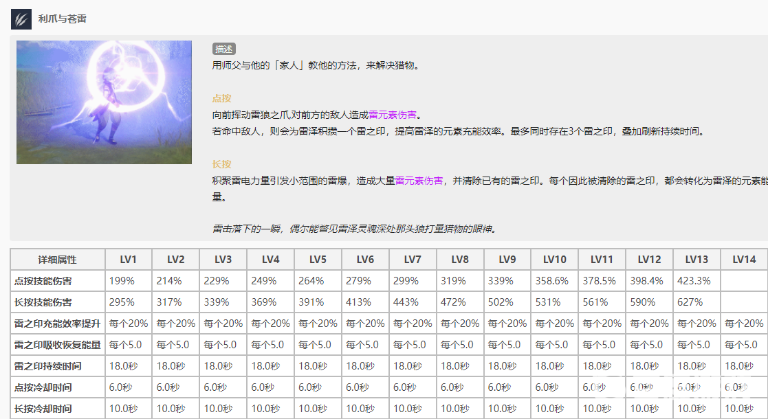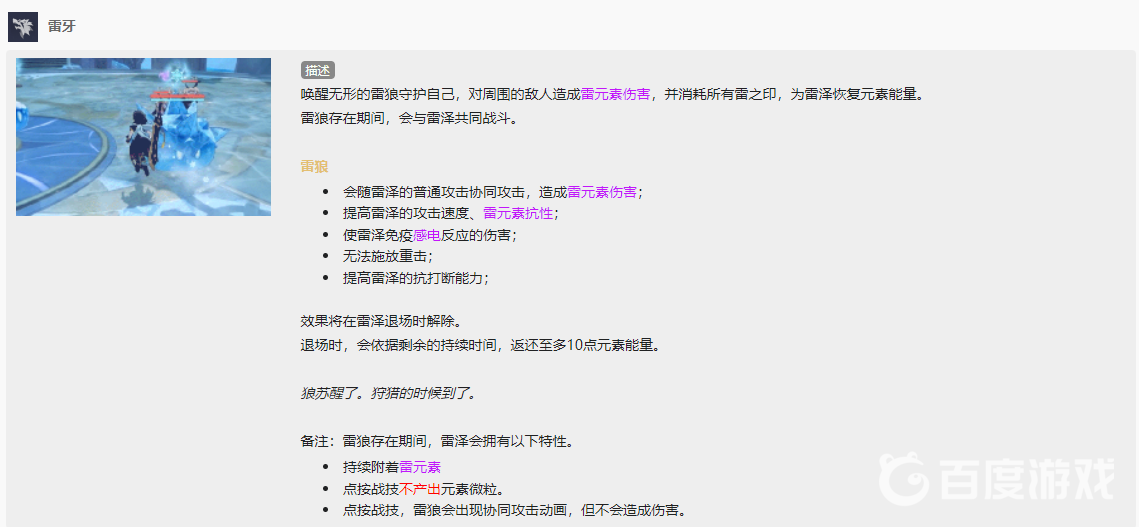 物理、元素都可以。雷澤持續戰場輸出可以打出物理傷害和雷元素傷害,雖然單一的物理傷害沒有反應傷害高,但是物理傷害不會被克制,不會遇到史萊姆免疫,尤其是放大以後的攻擊速度提高,也是雙手劍人物角色中觸感最舒適的。做元素傷害時由於其原素武技的cd很短,釋放出來招式後狼魂的雷原素損害也不容小覷,雷傷也輸出發生爆炸。
