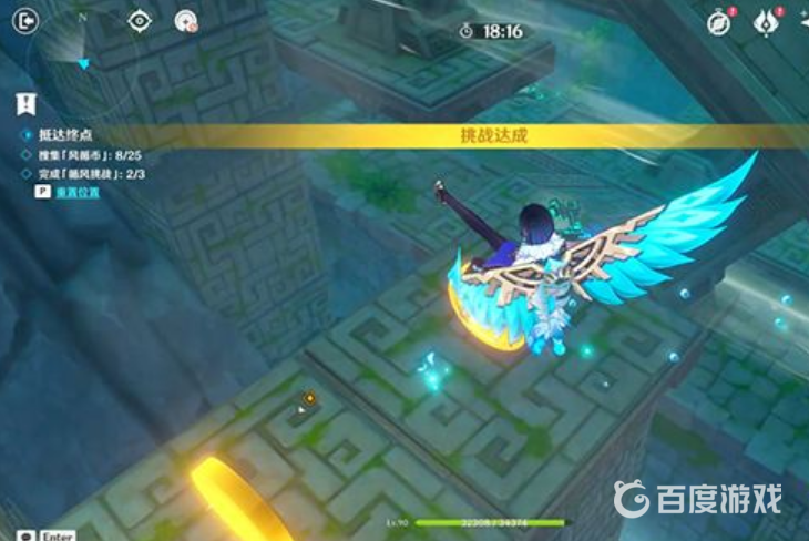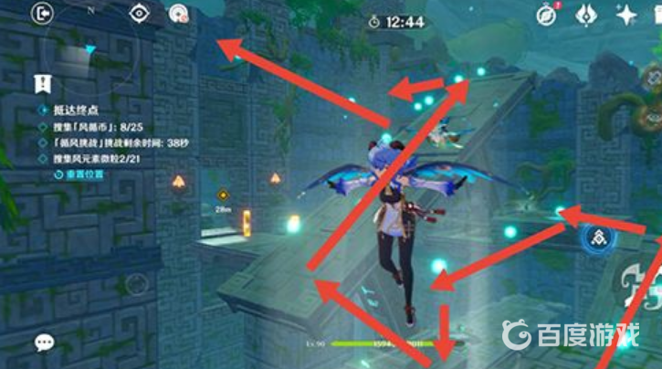 4、開啟風場,觸發第二次挑戰,到下圖位置時先過去將右側風場方向向左;