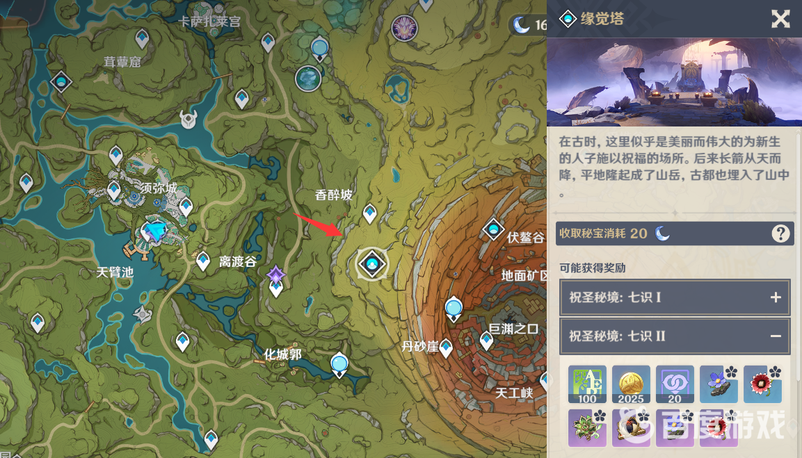 主要在須彌緣覺塔。目前草系聖遺物主要指的是「深林的記憶」這一套,能增加草傷減草抗,其主要的刷取地點就在須彌的緣覺塔。在這個秘境裡面,玩家還能刷出另外一套聖遺物飾金之夢。