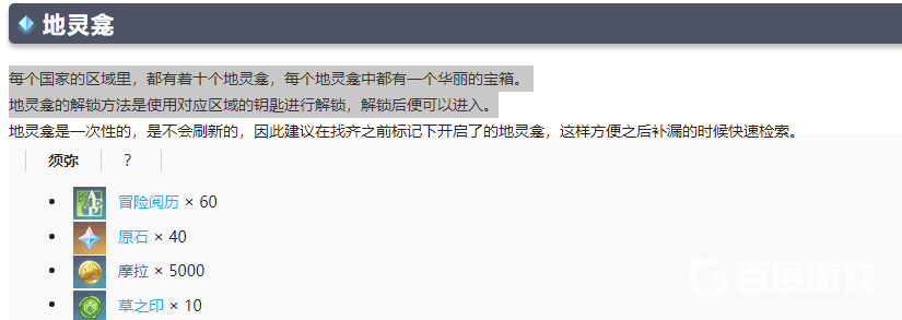 會,每個國家的區域里,都有著十個地靈龕,每個地靈龕中都有一個華麗的寶箱。探索蒙德、璃月、稻妻或須彌的大地,開啟寶箱、獲取神瞳、解鎖傳送點等探索行為都可以提升區域探索度。