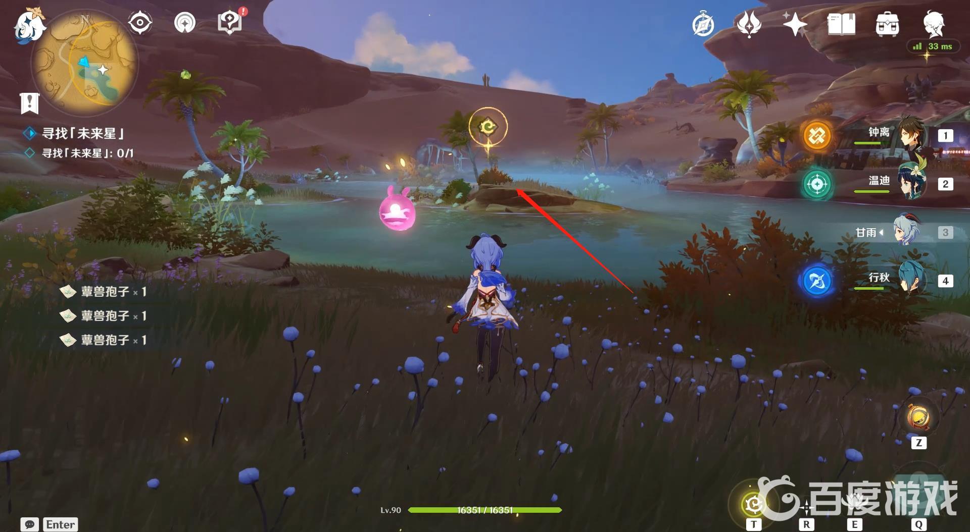 5、清理掉蕈獸後看向東南方向,可以看到綠洲中心有個四葉印,利用四葉印直接飛到綠洲中心。