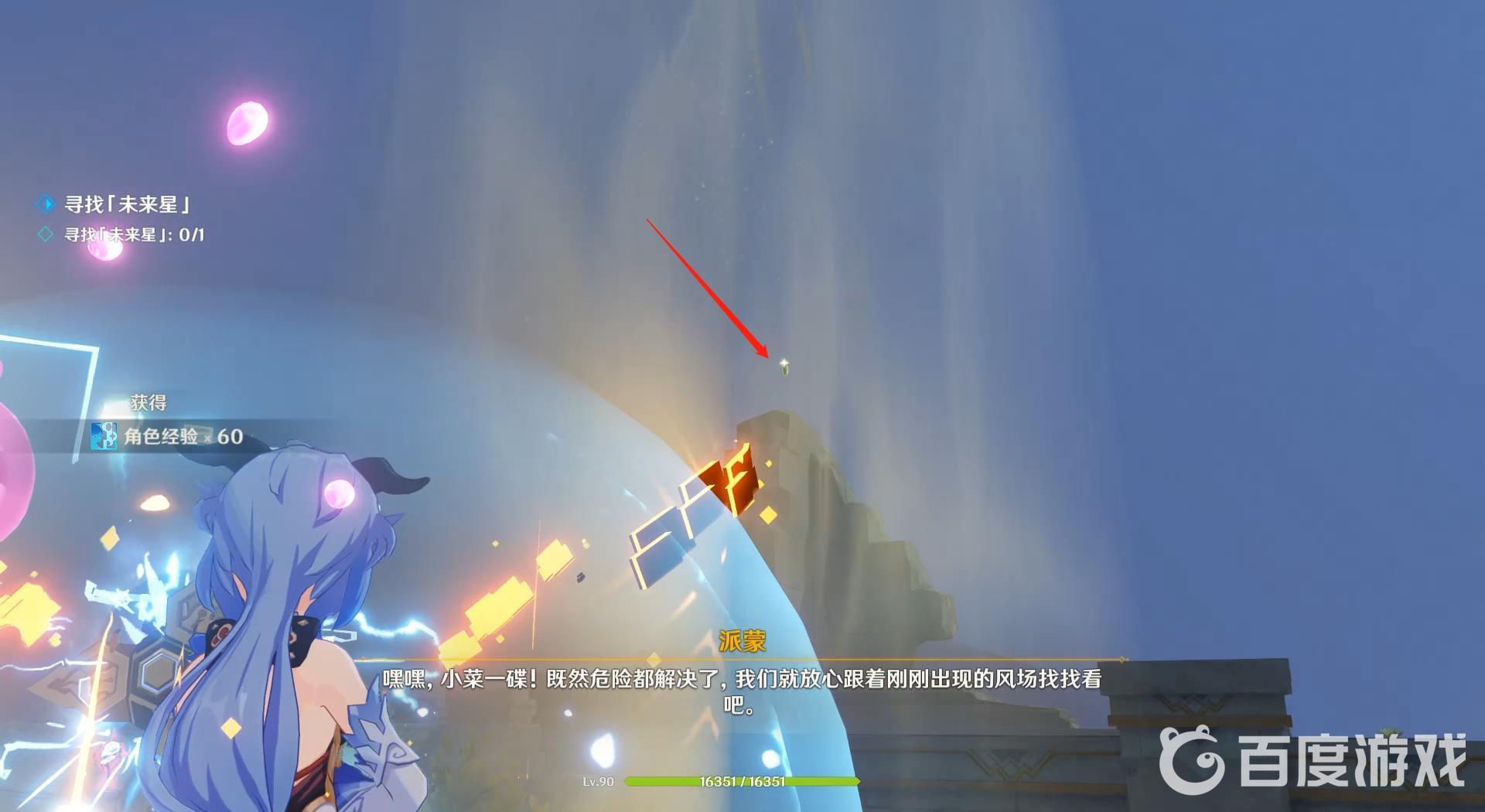8、三隻元能構裝體全部擊敗後會強制調整視角,這時就可以看到危險地帶的未來星了,利用風場飛上去即可獲取。