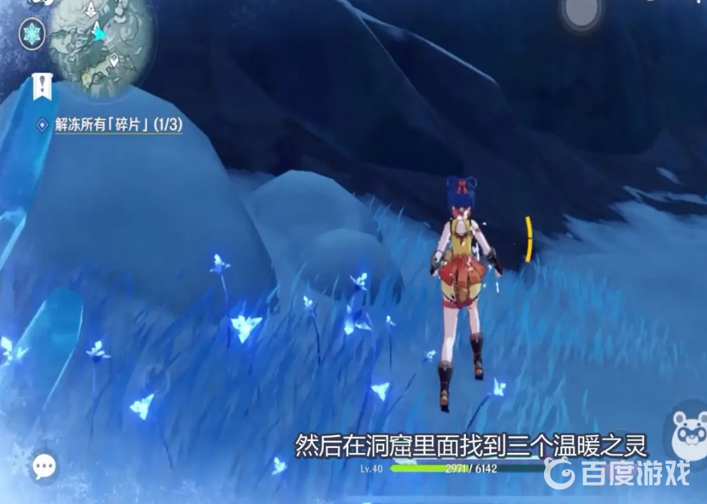 2、我們先去到洞窟的最下面,然後在洞窟裡面找到三個溫暖之靈。