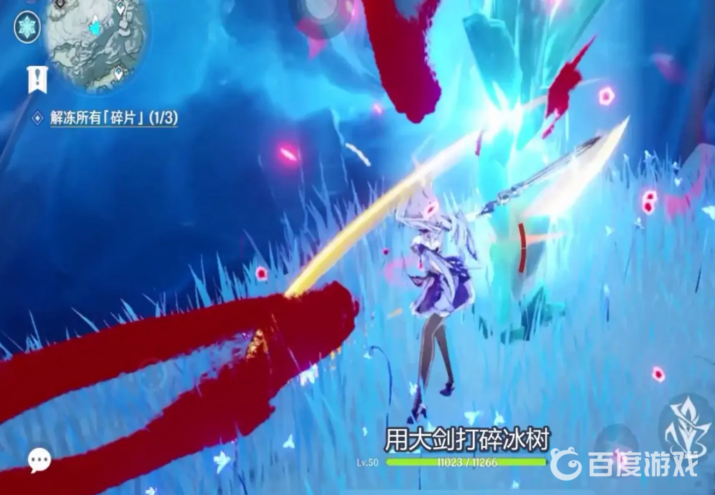 6、帶著深赤之石前往冰樹那,用大劍打碎冰樹。