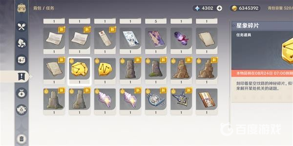 首次進入秘境,任務會提示我們進行探索,直接打開元素視野,調查所有光點,得到3塊星象碎片。