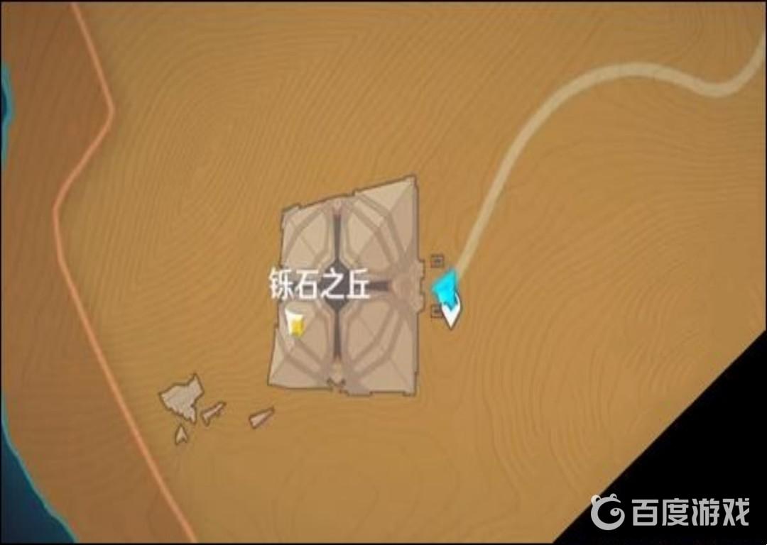 之後我們打開 地圖 找到須彌沙漠地區的【礫石之丘】下圖傳送位置,然後朝著西北方向 移動 。