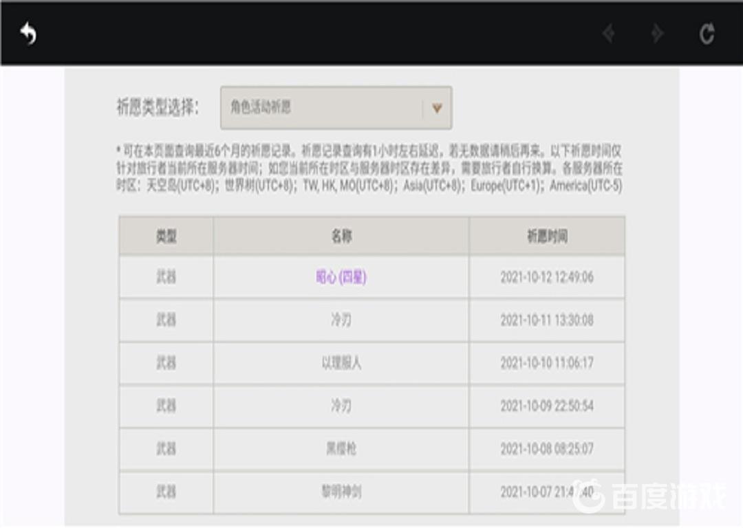 打開祈願界面就可以看到底下有個歷史記錄選項。