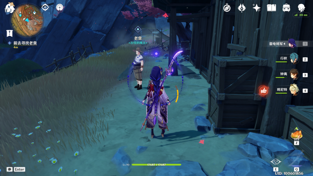 將唐無仇身邊的清心採光後與他對話開啟任務(採光清心可獲得千年千岩任務道具-「遠眺之花」)