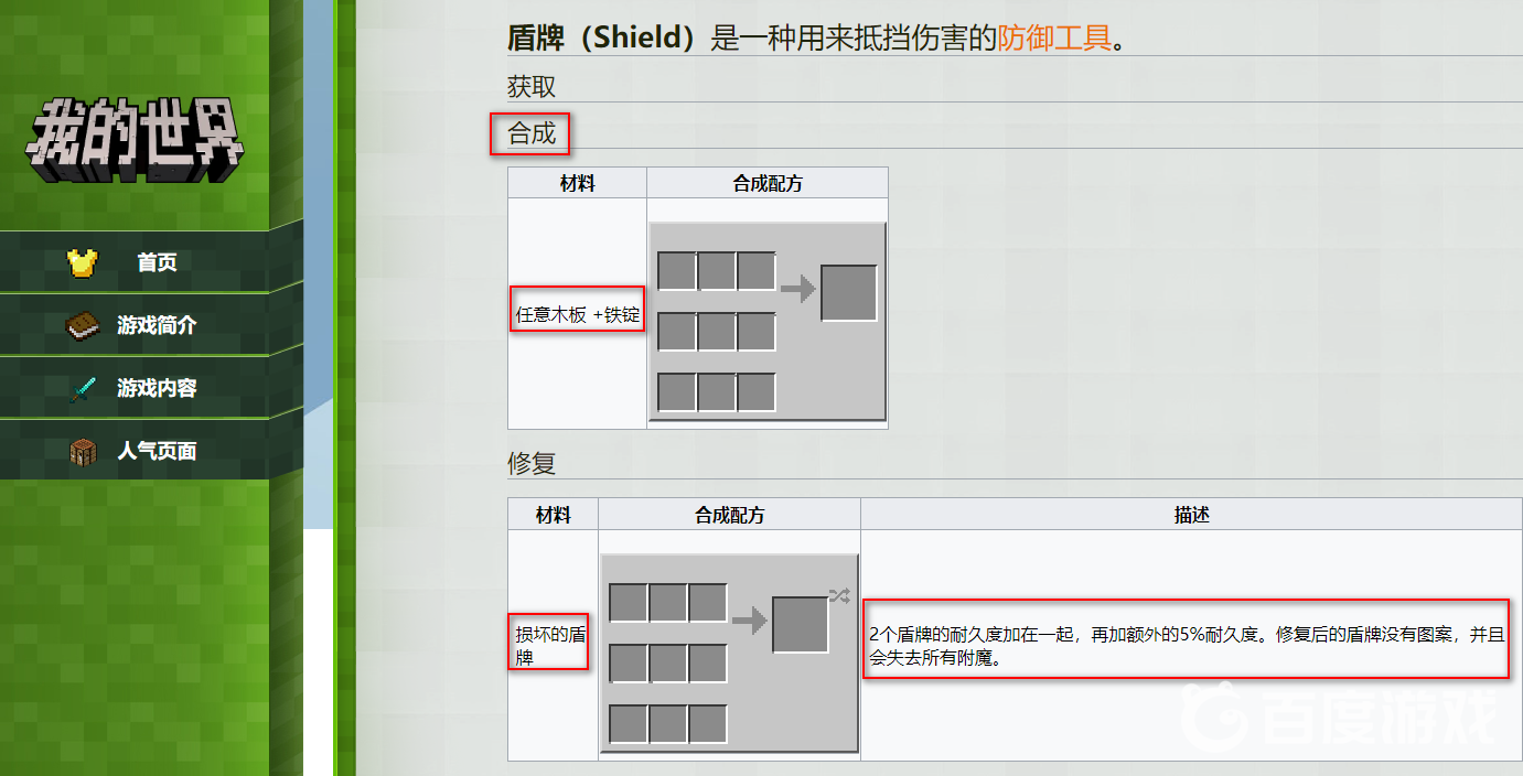 首頁 我的世界 問答 我的世界為什麼做不了盾牌? 2022-12-30 做不了盾牌是因為材料准備錯誤,正確材料為任意木板 鐵錠。2個盾牌的耐久度加在一起,再加額外的5%耐久度。修復後的盾牌沒有圖案,並且會失去所有附魔。