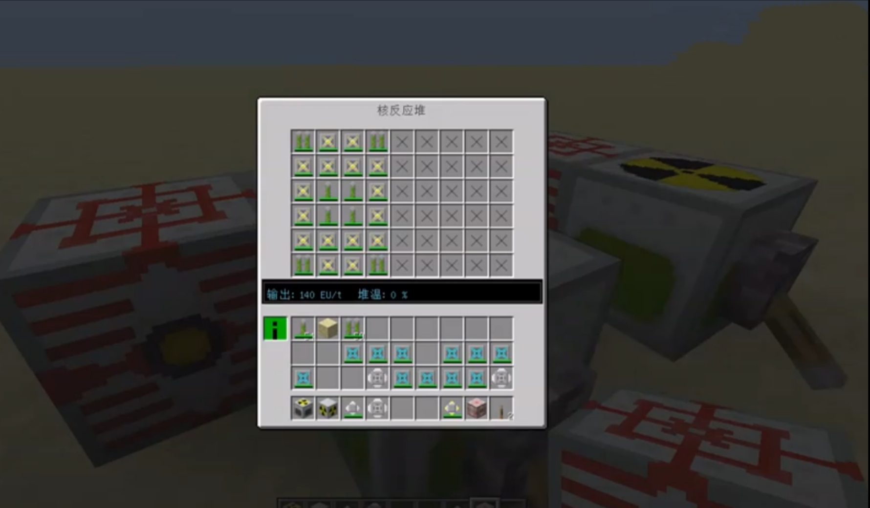 我的世界核電站擺法:首先中間的方塊放置核反應堆主體,然後在外部放核反應艙。最穩定正常也許並沒有那麼多資源做中子反射板,甚至沒有足夠的資源開滿一個核電站。佔地3乘4,一個核電站內最多擺放6個,沒鉛做核反應倉也足夠擺放兩個即可,上面是鈾單元單獨放的情況 而如果兩個鈾棒相鄰放置,則會有連鎖反應,產熱跟產電都大幅增加,這樣的核電站擺法是最為穩定的。