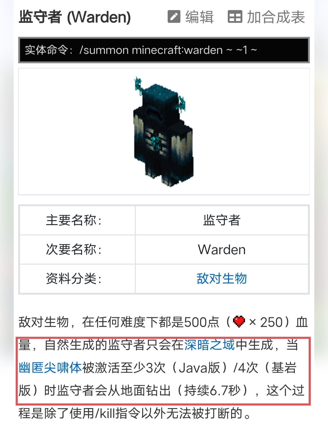 首頁 我的世界 問答 我的世界監守者怎麼召喚? 2022-12-30 當幽匿尖嘯體被激活至少3次(Java版)/4次(基岩版)時監守者會從地面鑽出,即可成功召喚。監守者具有擊退抗性,免疫火焰傷害,不會主動進入礦車和船。