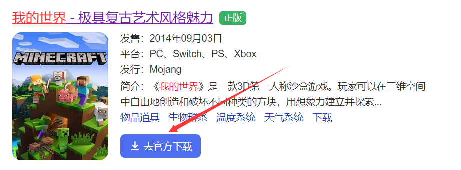 1.首先打開我的世界游戲的官網,然後點擊去官方下載,如圖所示。