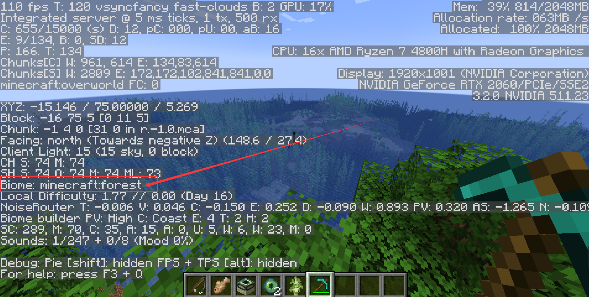 首頁 我的世界 問答 我的世界f3怎麼看群系? 2022-12-30 【我的世界】點擊F3即可調出有關該地塊包括空間坐標、群系在內的大量數據,生物群系的數據在屏幕的左側區域,例如下圖(Biome:Minecraft:forest)代表的是該區域為森林群系:以上就是有關於我的世界如何看群系的介紹。