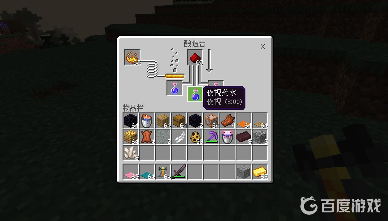 首頁 我的世界 問答 我的世界夜視葯水怎麼做8分鐘的? 2022-12-30 與紅石粉釀造就可以變成8分鐘的夜視葯水了。1,首先我們可以在上方放置紅石粉,在下方放置3分鐘的夜視葯水。2,然後就可以成功做出8分鐘的夜視葯水了。