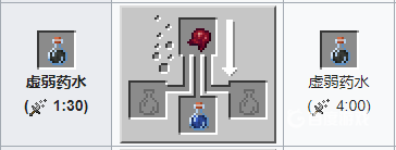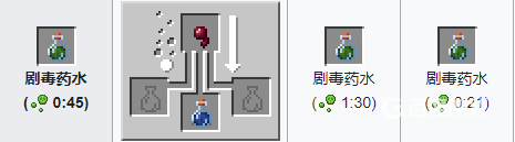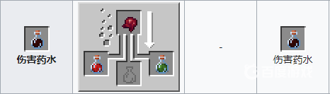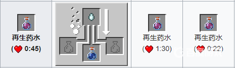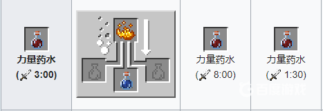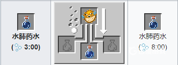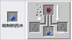材料:粗製葯水 烈焰粉。葯水效果:提高角色傷害能力一個半心的傷害,添加螢石粉,效果翻倍。