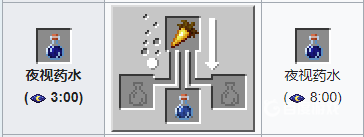 材料:金胡蘿卜 粗製葯水。葯水效果:能夠在煉獄,或是天黑的時候應用,認清身旁的物件。使一切以最大亮度顯示,包括水下區域。