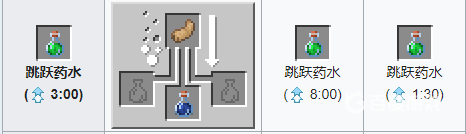 材料:兔子腳 粗製葯水。葯水效果:將生物的跳躍高度提升¼個方塊。最多可提升到8分鍾。