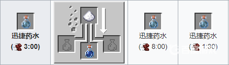 材料:糖 粗製葯水。葯水效果:為角色提升敏捷BUFF,提升大約20%的移動速度、疾跑速度與跳躍距離。添加瑩石效果翻倍,可是時間降低到一分半。