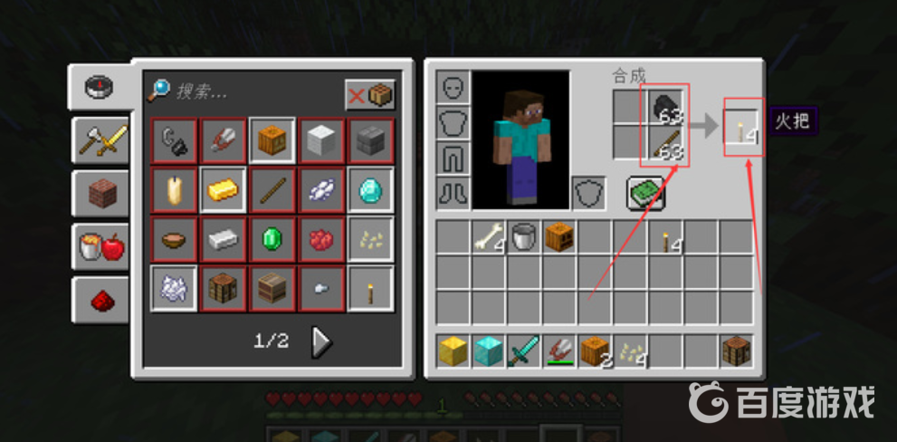 首頁 我的世界 問答 我的世界火把做不了怎麼辦? 2022-12-30 【我的世界】做不出火把可能是由於材料使用錯誤,或是製作地點錯誤。1.火把需要木棍跟煤炭來合成。2.玩家打開背包後,將煤炭跟木棍一次排列下去。3.也可以在工作台製作,每一個木棍加一個煤炭可以獲得4個火把。