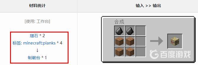 1、制箭台的做法很簡單,只要用兩顆燧石和四顆木材就能在工作台上合成得到。