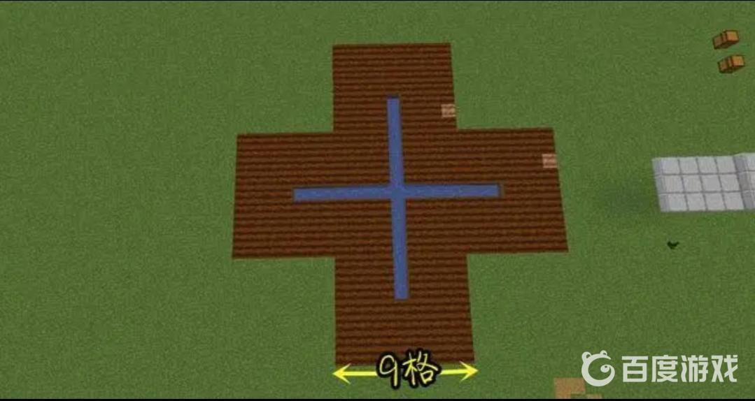 我的世界中一格水可以使半徑4格範圍內的耕地濕潤,一塊水可以灌溉4個格子(上下左右各數四個格子),也就是以水為中心可以灌溉9乘9=81塊土(9乘9大小的格子),玩家可以畫一個9*9大小的格子,正中間放一塊水,其他格子都可以灌溉到,所以種植水的範圍是81個格子。