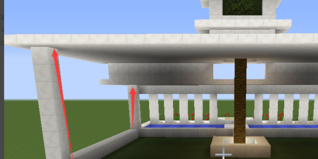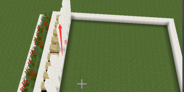 13、再向後放置5格石英塊,並圍起5X5的區域,中間放置從林木,高度隨意。