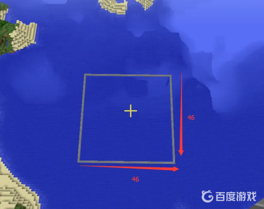 1、首先找一個合適的位置,用石磚(或任意方塊)圍起一圈46X46的地方。推薦大家在水上建造,因為在陸地上容易遇到怪而且地形不規則。