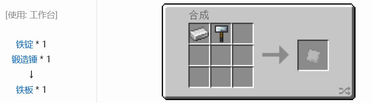首頁 我的世界 問答 我的世界鐵板怎麼做? 2022-12-30 使用一個鐵錠和一個鍛造錘,在工作台處就可以合成出一個鐵板了,鐵板是可以合成的基礎材料,是很多精密器械的合成材料之一,比如說範圍觸發器,鈦鐵合金板。
