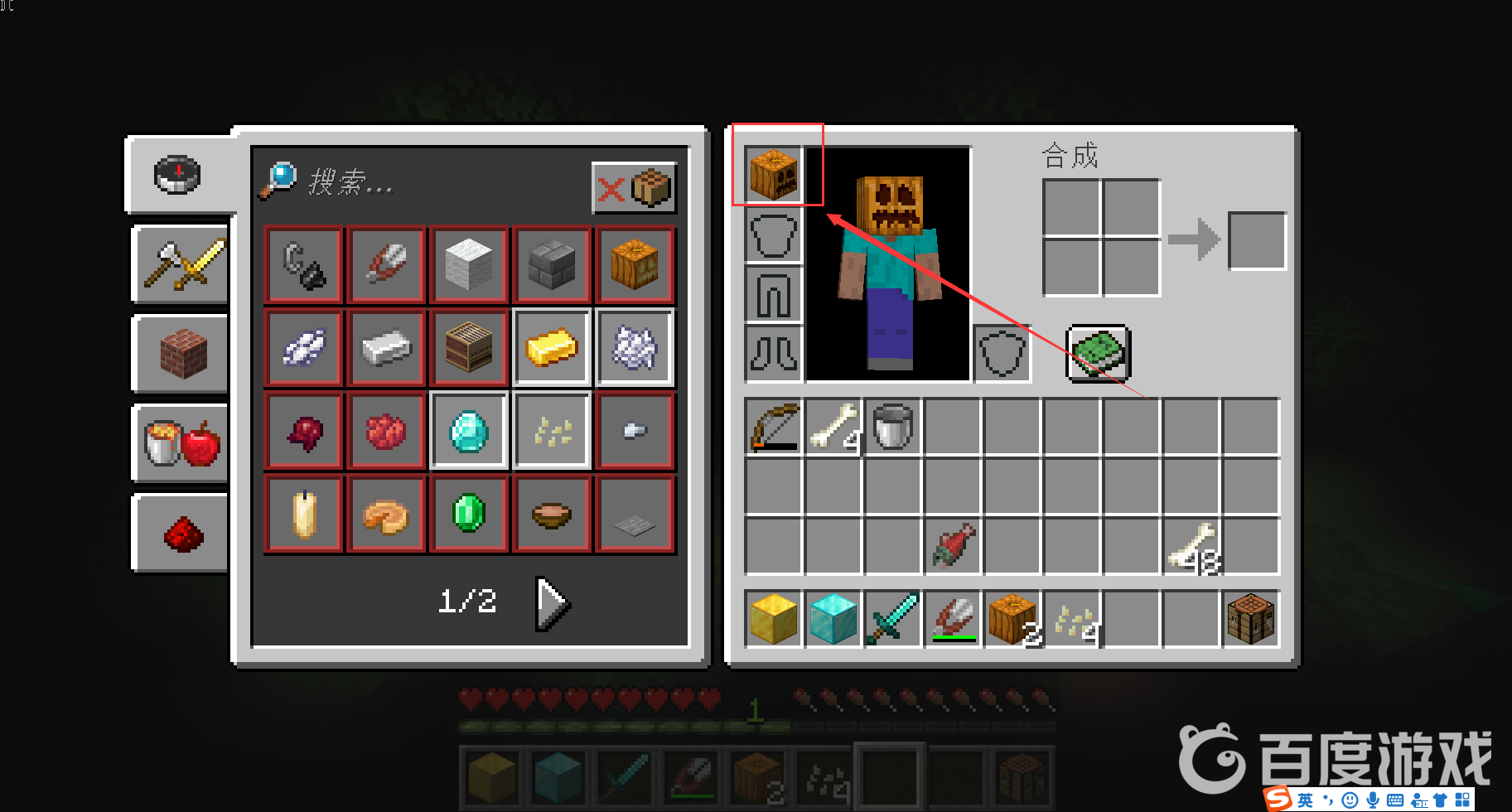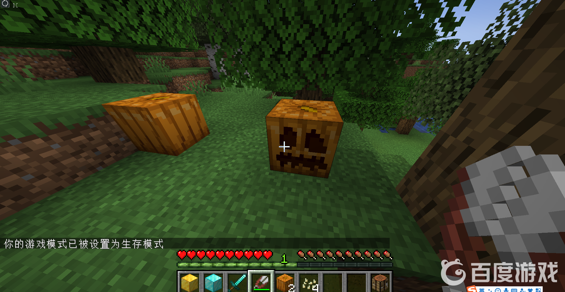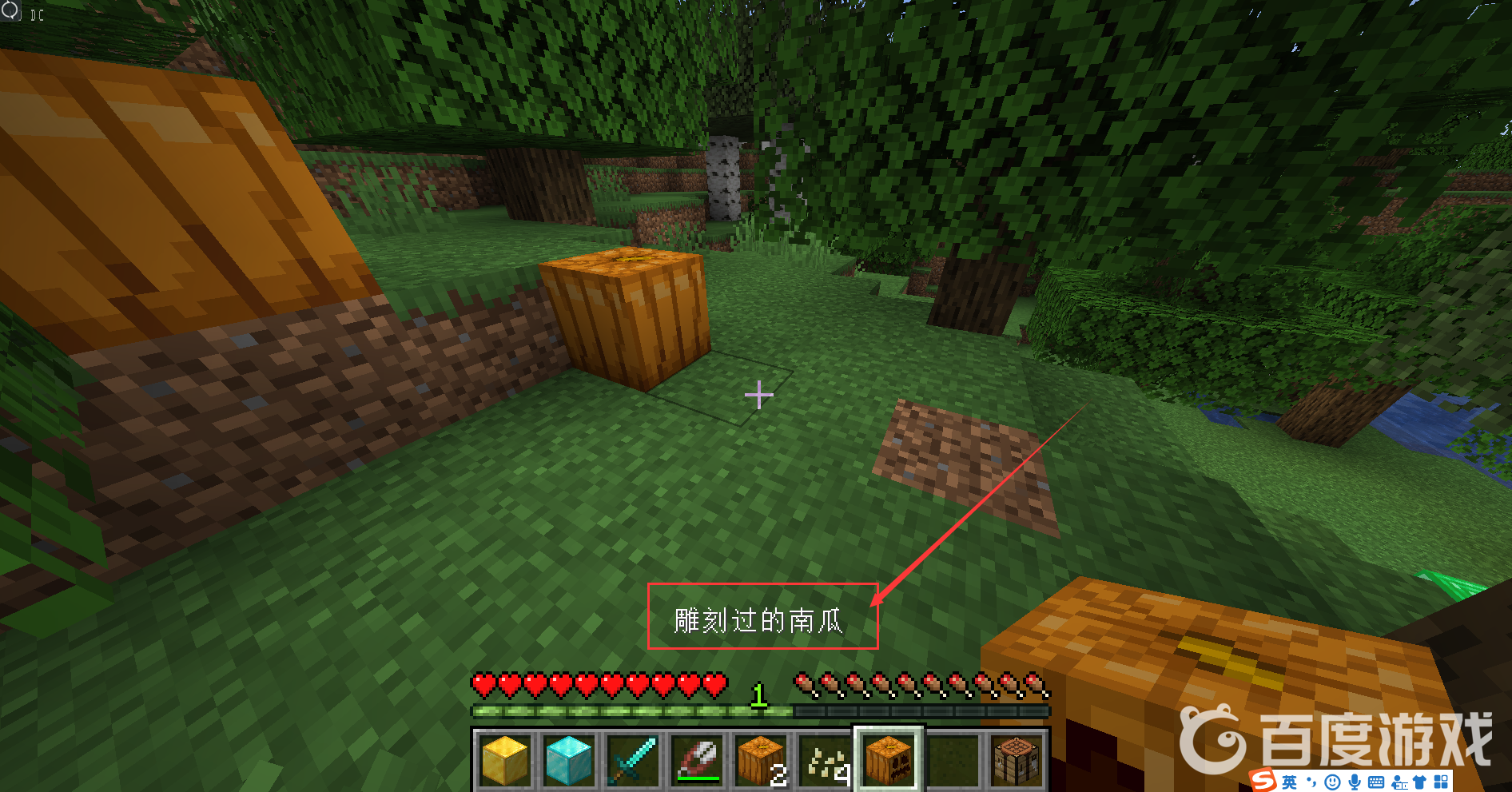 首頁 我的世界 問答 我的世界南瓜頭在哪裡找? 2022-12-30 【我的世界】需要用剪刀來雕刻南瓜來獲得。例如下圖,南瓜隨機出現在森林裡:使用剪刀對南瓜右鍵,可以進行雕刻:獲得【雕刻過的南瓜】,也就是南瓜頭:南瓜頭可以直接裝備在頭上: