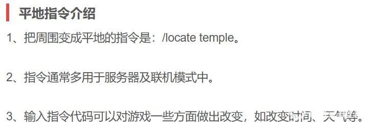 首頁 我的世界 問答 我的世界鋪平地面指令是什麼? 2022-12-30 把周圍變成平地的指令是:/locate temple。指令通常多用於伺服器及聯機模式中,輸入指令代碼可以對遊戲一些方面做出改變,如改變時間、天氣等。可以用指令召喚出命令方塊做一些有意思的東西,多用於地圖製作上,前提需開啟作弊模式。