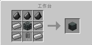 3、其次,還要合成機器框架,方法是四個鐵欄桿 四個鐵錠 一個基礎電容,上面合成的基礎電容這里需要消耗一個,還剩一個下面就會用上。