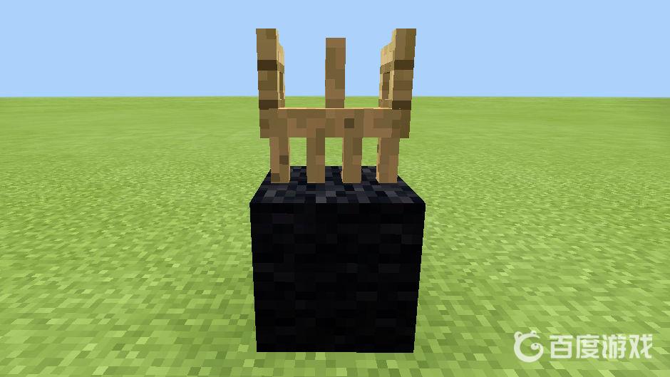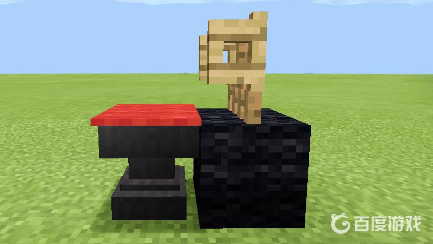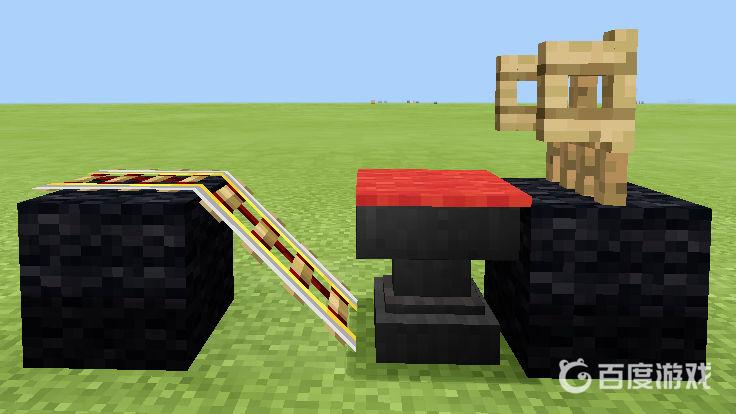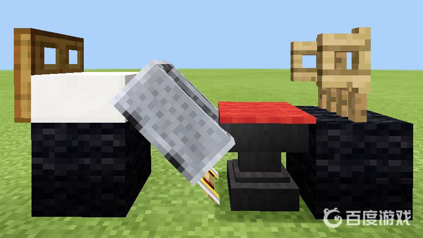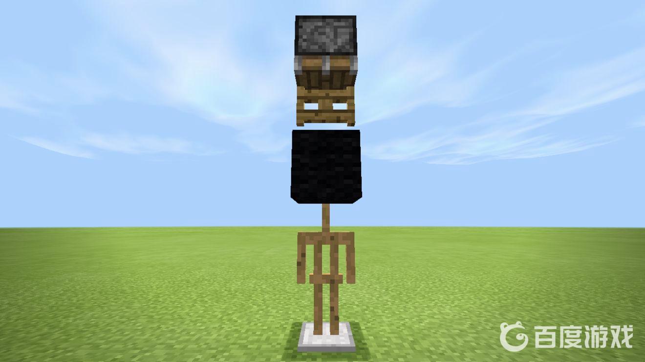 第2步:在這個木架的上方,擺放黑色的羊毛、圍牆門、與粘性活塞。