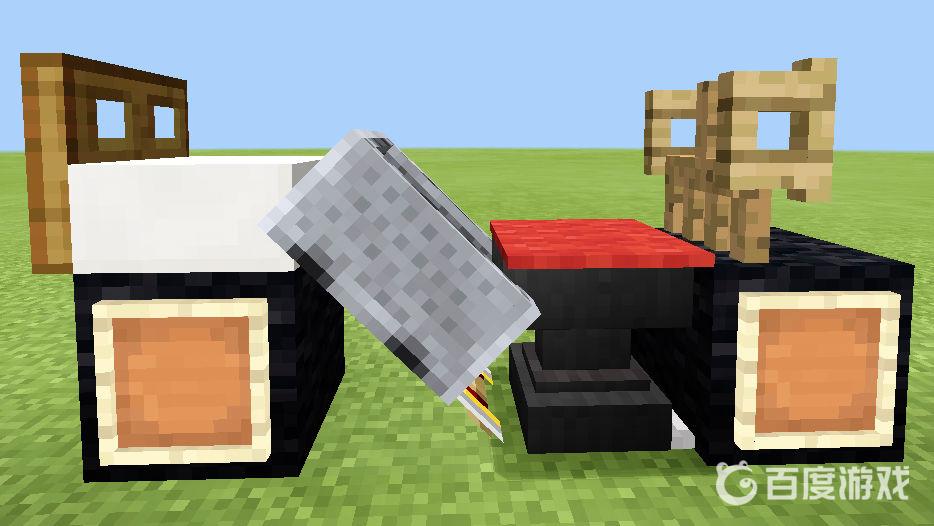 第5步:在座位的左邊放好動力鐵軌與羊毛。