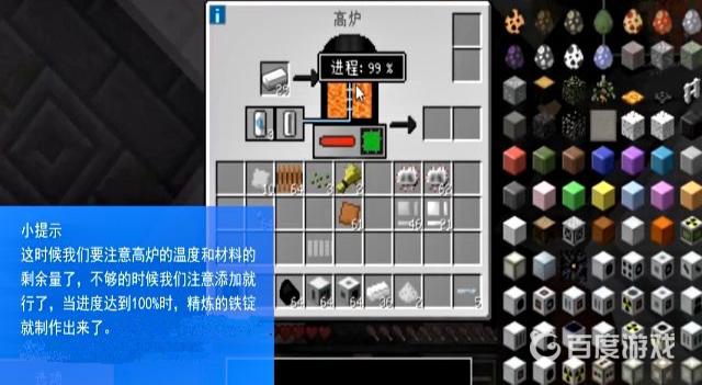 首頁 我的世界 問答 mc精煉鐵錠怎麼做? 2022-12-30 首先在一個合適的地方放下高爐,在高爐中放入鐵錠、壓縮空氣單元等材料就可以製作。接下來就可以安心等待提煉的進度了,這時候要注意高爐的溫度和材料的剩餘量,不夠時要注意添加材料和溫度。當進度達到100%時精煉的鐵錠就製作完成了。