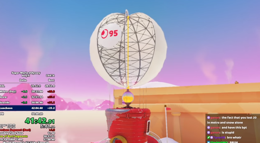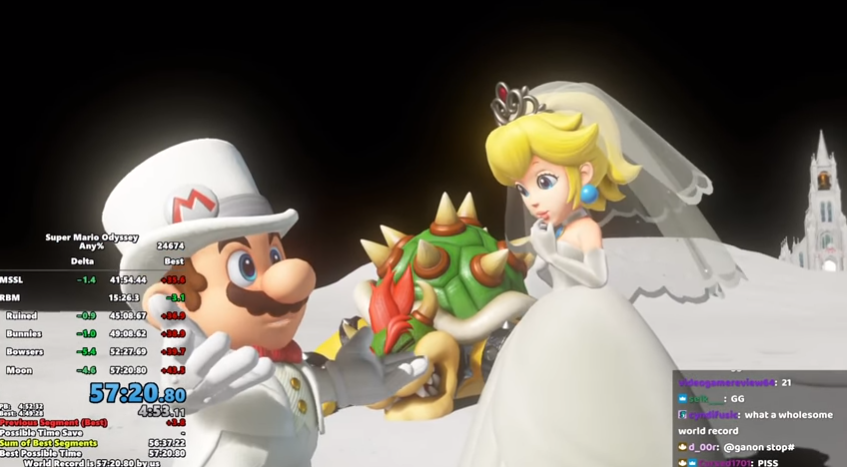 任天堂代表名作作《超級馬里奧:奧德賽》已經發售很久了,不過仍然還有高玩痴迷於此挑戰自我,近日據外媒報道, Any%不追求收集只追求速度的速通新紀錄達成,為57分21秒,距離突破57分鐘瓶頸依然有著相當遙遠的距離。