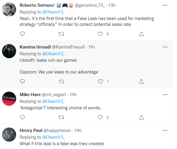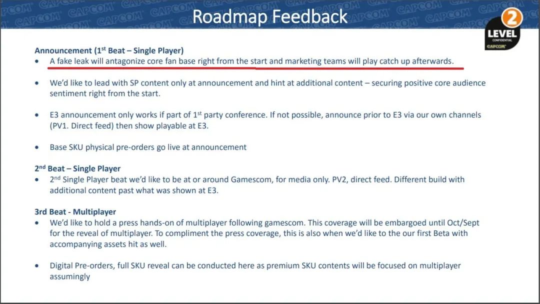 從圖中可以看到,卡普空的策略就是用一些假泄密引起核心粉絲的反感,之後營銷團隊會迅速跟進。