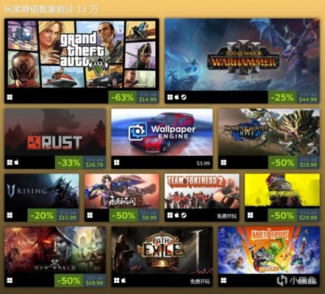 年度最熱玩游戲榜(衡量標准為同時在線玩家峰值數量)