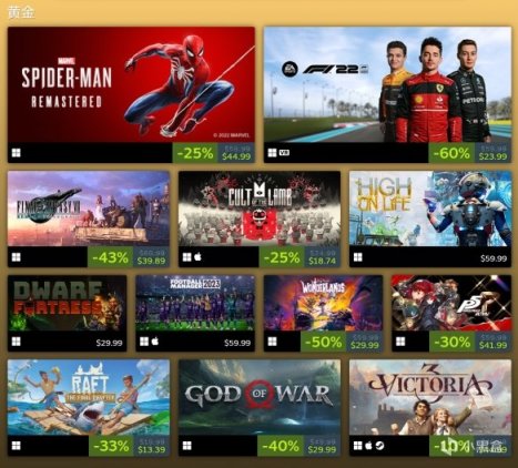 黃金級新游戲中有不少主機移植大作,比如蜘蛛俠、戰神、P5、FF7RE,另外也有一些獨立精品,比如《咩咩啟示錄》、《矮人要塞》、《木筏求生》(1.0版今年剛出)。