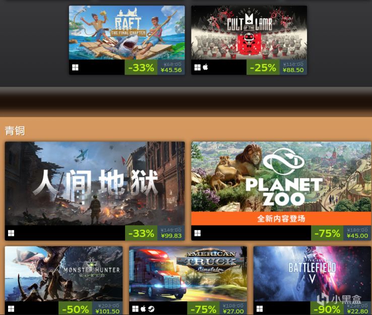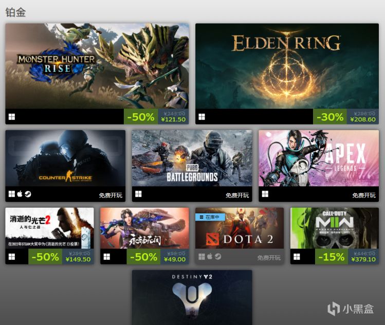 其中還有一個比較有意思的點,在「最暢銷遊戲」一欄,Steam按照以上提及的一些綜合數據,把玩家分為幾個不同段位。這四個不同段位分別是鉑金,黃金,白銀和青銅,有點類似LOL的排位。段位越高,代表這個群體的玩家今年和Steam的粘性越高,包括遊戲時間,遊戲消費,社區貢獻等。下面就盤點一下這份榜單裡面,不同段位的玩家最喜歡購入哪些遊戲。
