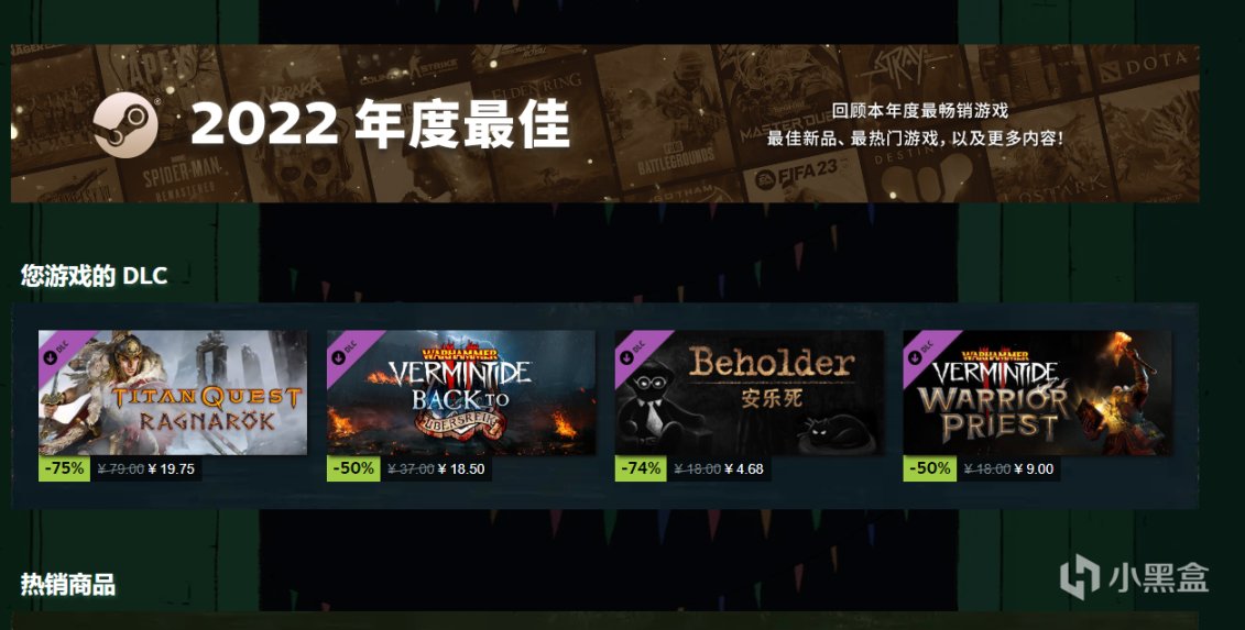 北京時間12月30號早上,Steam公布了2022年度最佳遊戲榜單。這份榜單分為6個類別,分別是:年度最暢銷遊戲,最熱新品,最熱玩遊戲,最佳搶先體驗畢業作品,Steam Deck 最熱玩遊戲,最佳VR遊戲。Steam統計的維度是在線玩家峰值,每日活躍用戶,該款全年遊戲營收。當然,榜單上面的排名不分先後,順位只是排版美觀的問題,能夠上榜的都是玩家今年喜歡的優秀作品。點擊STEAM商店,點精選,拉到中部,有一個顏色是金黃色的,標註有「2022年度最佳」的橫幅就是。