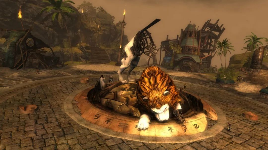 我也同時想到,獅子拱門是《激戰2》最多元的城市,我見過這張地圖破敗的樣子,後來我們重建了它。如今那裡充滿生氣,小男孩、小女孩相互打鬧,還總能聽見女孩對男孩說:「那你就得讓我親你」。
