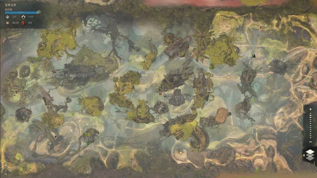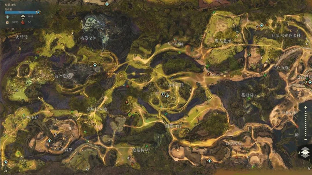 這張地圖位於密林深處,線路盤根錯節,許多道路僅僅是一條巨大的樹榦。地圖上有許多探索點,但如果你按照地圖方向,往探索點前進,很有可能到達不了。