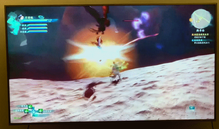 進入遊戲,《仙劍七》在大屏幕上出彩的表現力就撲面而來了。比如精彩的影視級過場,是《仙劍七》的一大特色。而雲版《仙劍七》不僅是畫面精度和流暢度都足夠到位,還藉助大屏幕的優勢進一步強化了過場動畫的魄力。看過許多遍的「重樓大戰修吾」,在大電視上無疑有著更強的情感渲染力度。
