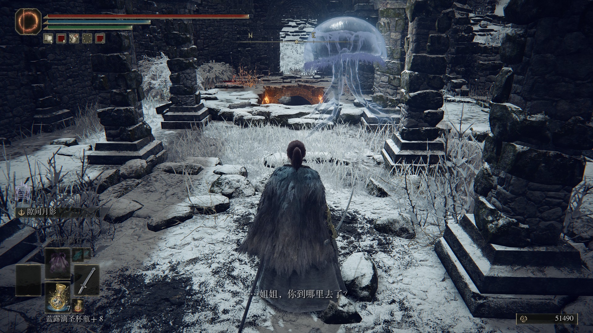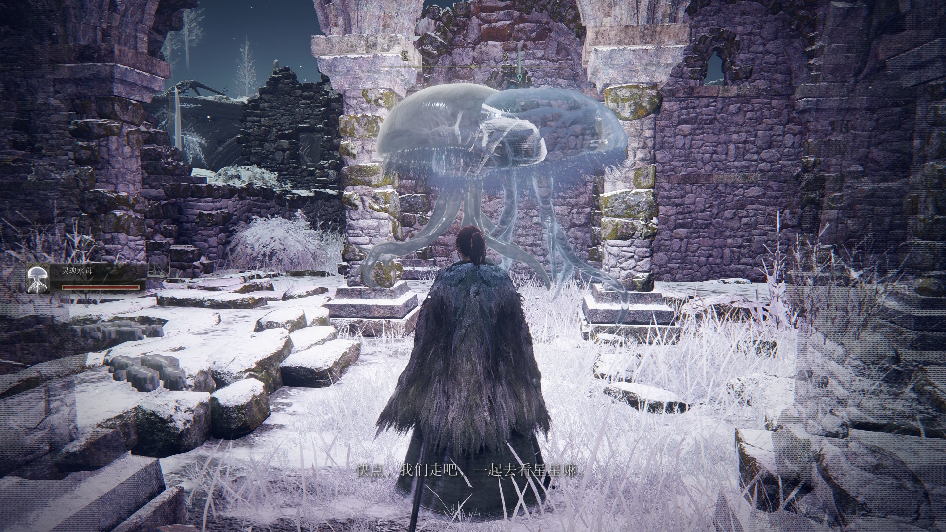 在後期來到雪山的觀星廢墟可以找到這樣一隻呼喚姐姐的水母